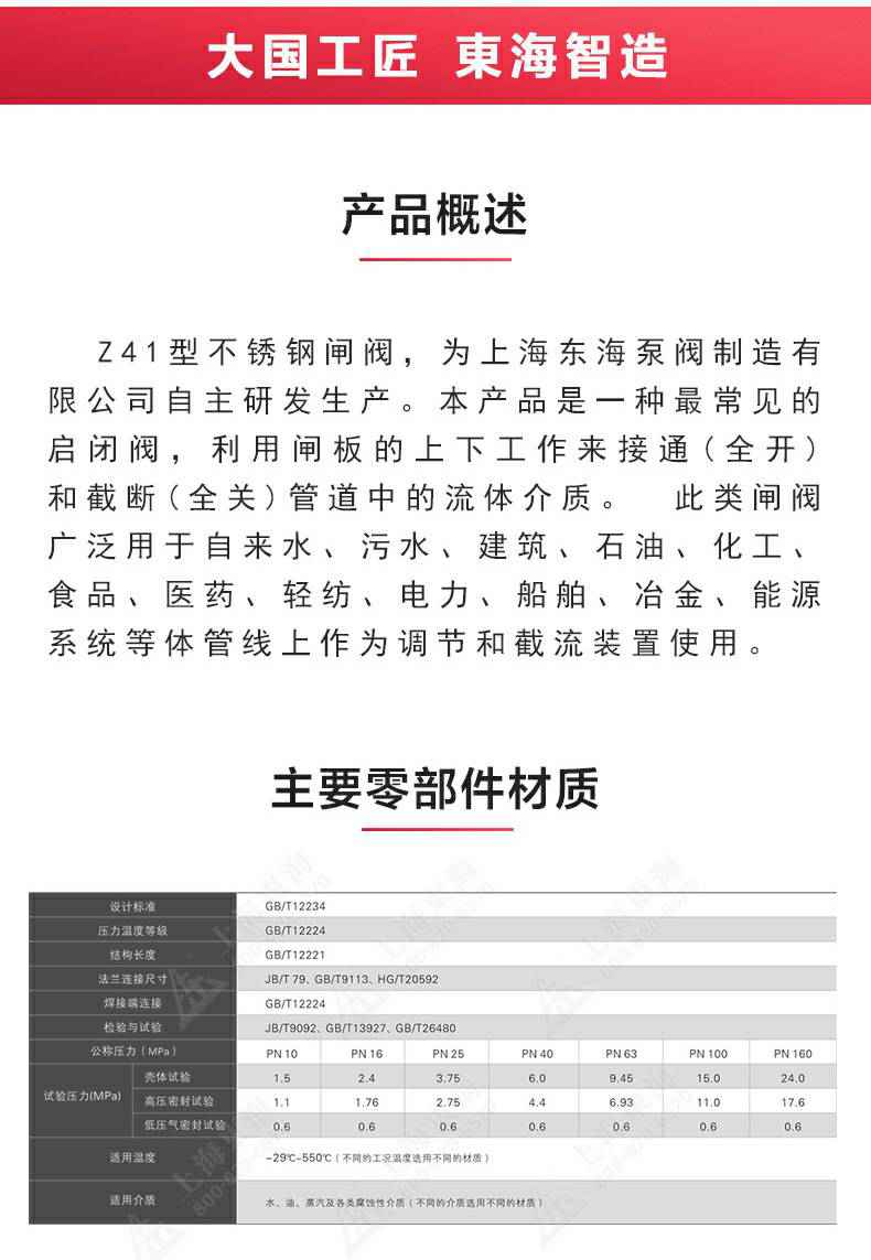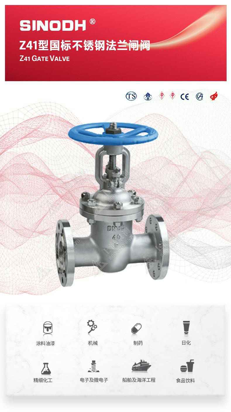 Z41型不锈钢闸阀,为爱游戏最新官网-爱游戏(中国)自主研发生产。本产品是一种最常见的启闭阀,利用闸板的上下工作来接通(全开)和截断(全关)管道中的流体介质。此类闸阀广泛用于自来水、污水、建筑、石油、化工、食品、医药、轻纺、电力、船舶、冶金、能源系统等体管线上作为调节和截流装置使用。